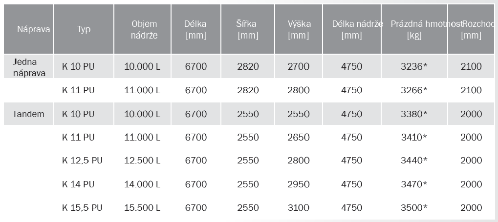 Řada K se vyznačuje nízkým těžištěm díky kompaktní nádrži a lehké konstrukci. U cisteren řady K kejda proudí samostatným výtlačným potrubím k trojcestnému ventilu na zadní části cisterny, přičemž sací potrubí umožňuje rychlé a úplné naplnění nádrže v nejkratším možném čase.