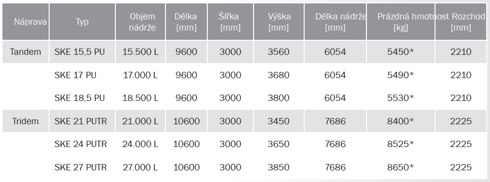 Cisterny řady SKE se vyznačují mimořádně nízkou hmotností, nízkým těžištěm a vysokou stabilitou. Jsou vybaveny nádržemi s velkým objemem a nabízejí vysoké užitečné zatížení. Vedení kejdy skrz rám umožňuje její efektivnější proudění. Velký průřez rámu snižuje protitlak a šetří energii na straně pohonu, což vede k menšímu opotřebení čerpadla.